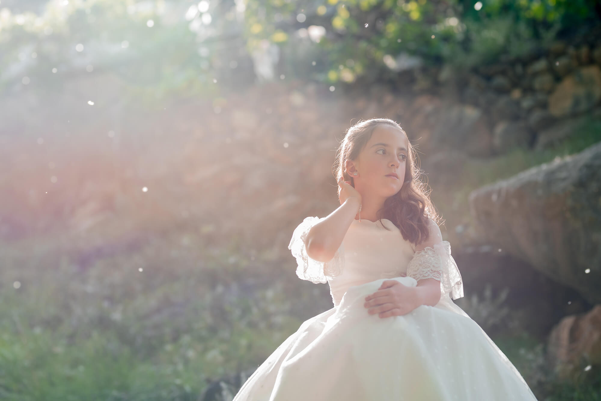 En las sesiones de comunión, pretendo exaltar las emociones del niño o niña de la manera más natural posible. Para ello, las sesiones realizadas son en el exterior, con la intención de que puedan interactuar libremente con el medio y hacerles sentir más cómodos dentro de su entorno.